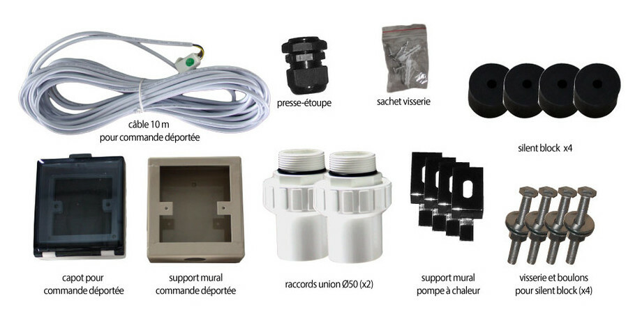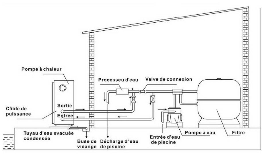 - Les appareils de traitement chimique doivent être montés après la pompe à chaleur.