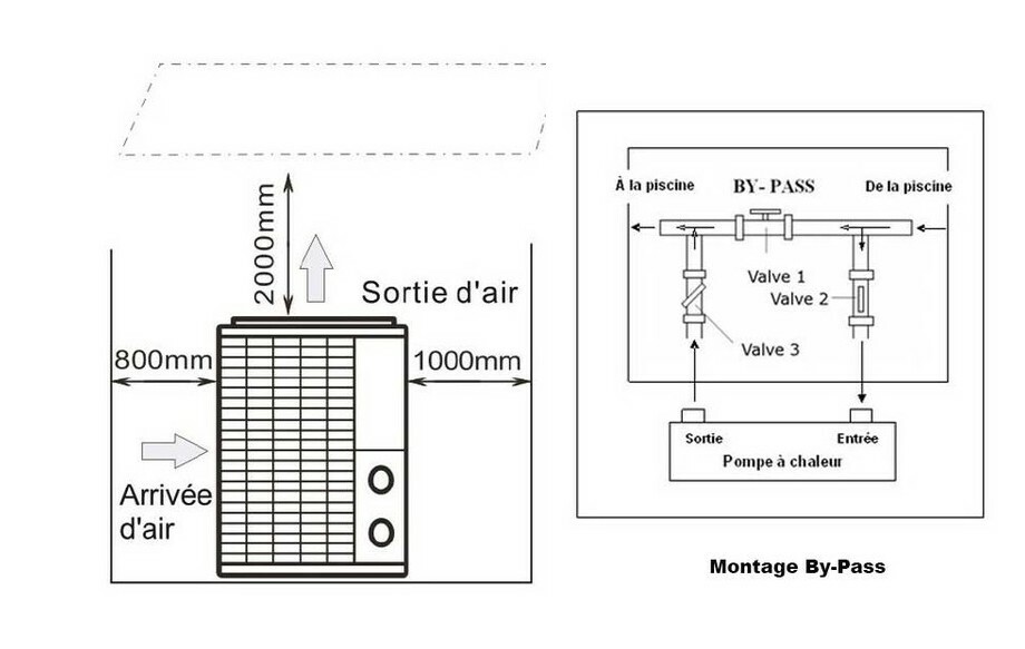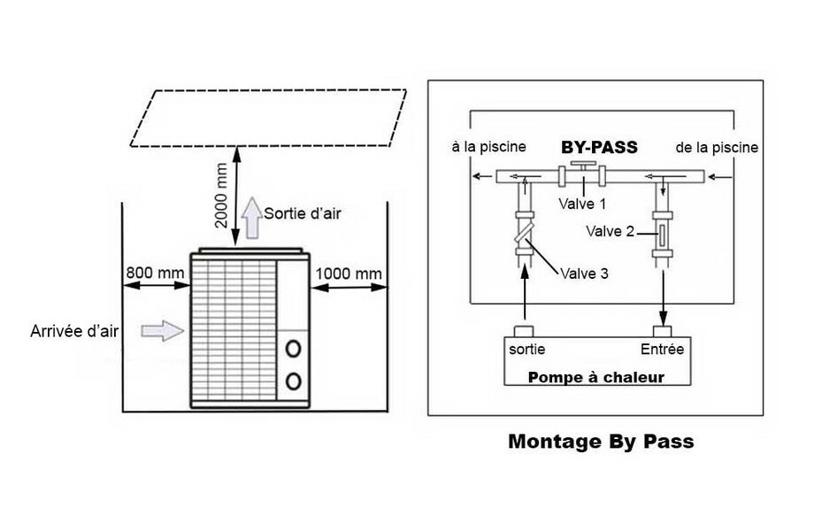 - L'installation d'un by-pass est impérative (débit de la pompe de filtration 20% supérieur à celui pouvant passer dans l'échangeur). Non inclus, à prévoir par l'utilisateur.