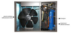 - Ventilateur axial : accouplement direct, moteur à très faible niveau sonore. La forme des pales et leur composition permettent une réduction supplémentaire du bruit, notamment grâce à la vitesse de rotation peu élevée.