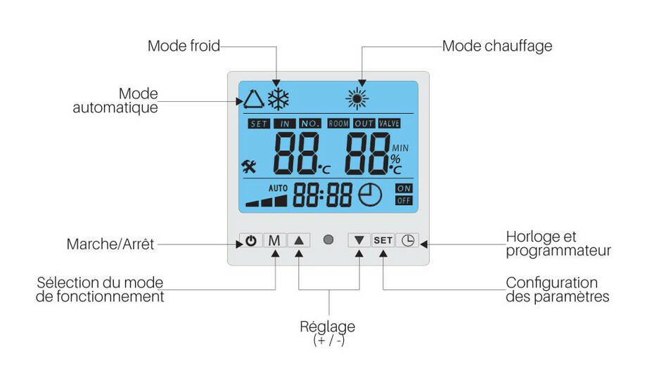 - Boîtier de commande LCD qui permet une configuration intuitive et complète des paramètres de fonctionnement
