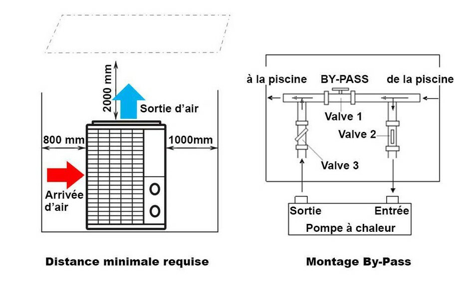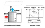 - Le by-pass est obligatoire (débit de la pompe de filtration 20% supérieur à celui autorisé dans l'échangeur de la pompe à chaleur). Non inclus, à prévoir par l'utilisateur.