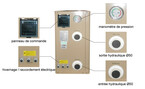 Panneau latéral : il réunit les entrées et sorties hydrauliques, le bornier de raccordement électrique, la vidange, le manomètre et le panneau de contrôle.