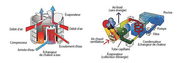 La pompe à chaleur fonctionne en captant la chaleur de l'air ambiant et en la transmettant à l'eau de la piscine.