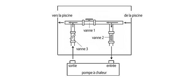 - Le by-pass est impératif (débit de la pompe de filtration 20% supérieur à celui autorisé dans l'échangeur de la pompe à chaleur). Non fourni, à prévoir par l'utilisateur.