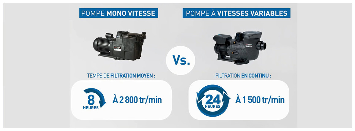 La pompe tourne moins vite en filtration donc elle est beaucoup plus silencieuse ! Les grandes vitesses sont utilisées uniquement pour les contre-lavages.