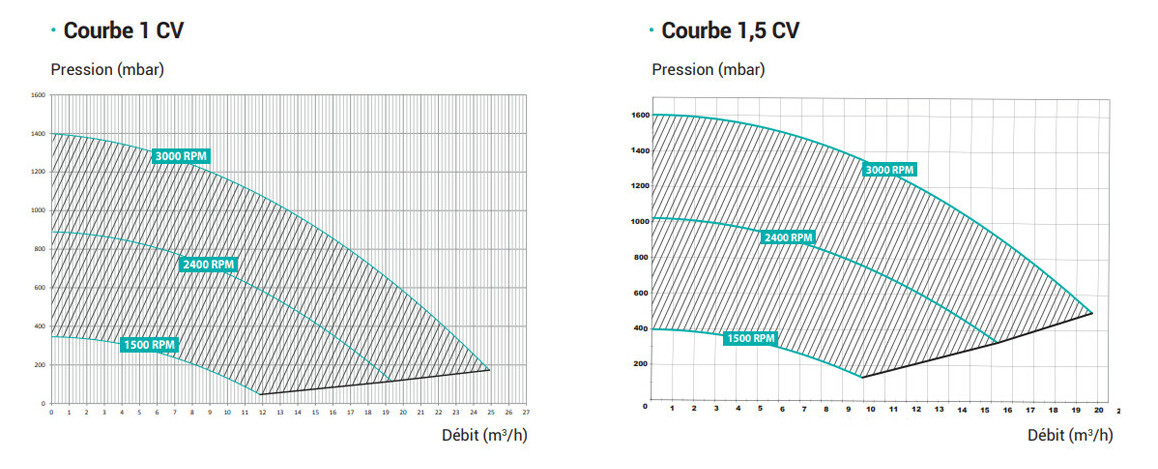 - Caractéristiques moteur-variateur : Classe F, IP55, 50Hz, Brushless VFD