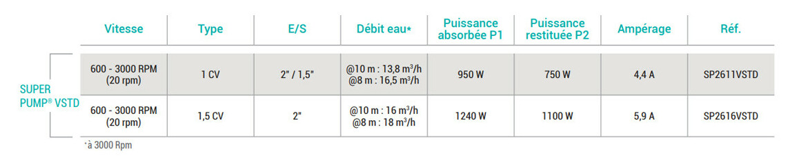 La Super Pump VSTD est disponible en 2 puissances : 1 CV et 1.5 CV pour s'adapter à vos besoins. Elle fonctionne en continu 24h/24 : l?eau de la piscine est filtrée et traitée continuellement. Comme la pompe tourne moins vite, elle est alors plus silencieuse et sa consommation électrique est fortement réduite.
