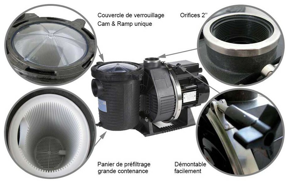 - Panier de préfiltre à large contenance : opérations de nettoyage et maintenance espacées.