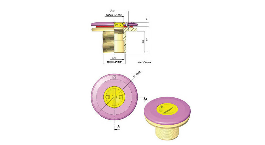 - Filetage bouchon : 1"1/2
