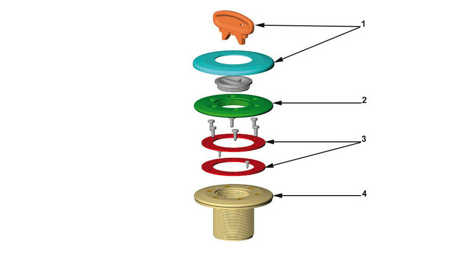 Livrée complète avec le bouchon, la bride, la visserie en inox et les joints d'étanchéité.