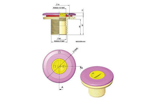- Filetage extérieur 2", intérieur Ø50 mm