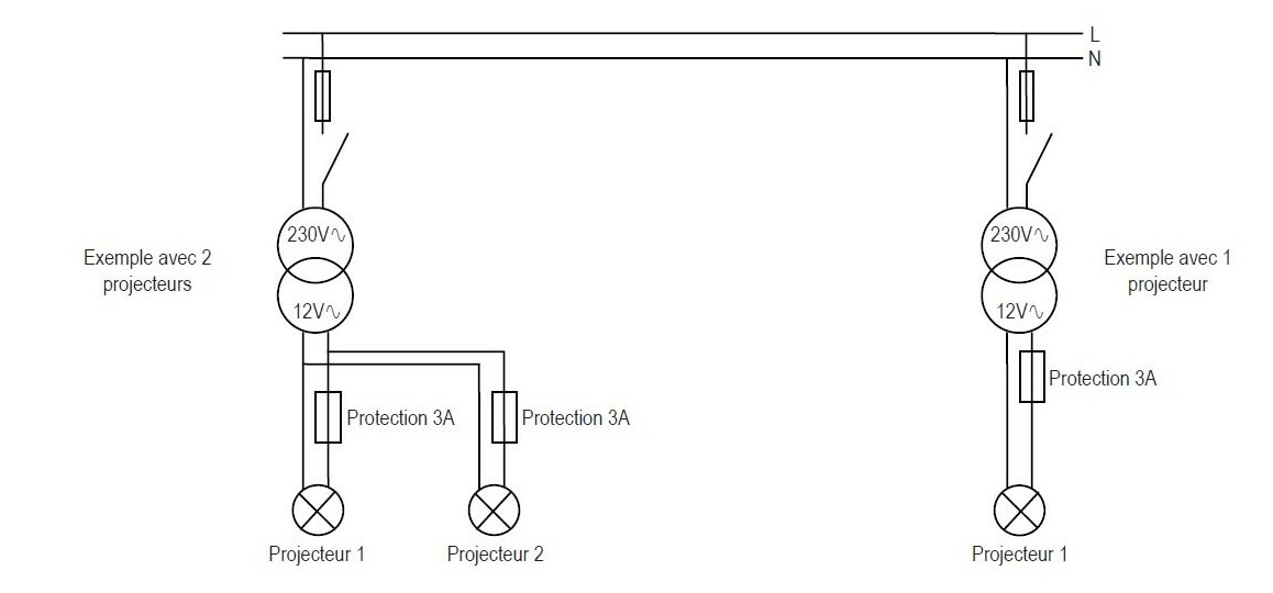 - Pour éviter les zones sombres, il est préconisé d'installer un projecteur par 25 m² de surface d'eau.