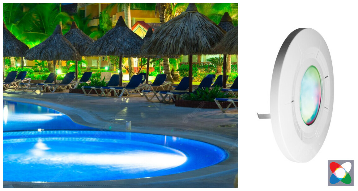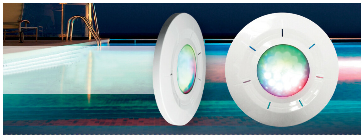 Il est possible d'embellir votre piscine tout en économisant de l'énergie ! Le projecteur LED s'installe dans toutes les piscines équipées de niches standards pour ampoule PAR56. Il peut aussi bien être utilisé dans les nouveaux bassins qu'en remplacement des ampoules à incandescence classiques. Design ultra plat, éclairage blanc + couleur RVB. Puissance 30 W. Un système de contrôle à distance des projecteurs peut également être installé, disponible à la vente sur notre site internet.