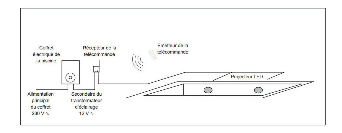 Grâce à ce boîtier de commande à distance au montage très simple (en série sur le circuit des projecteurs), vous pilotez votre éclairage sans contrainte, vous choisissez votre couleur ou votre programme d'un simple appui sur une touche !