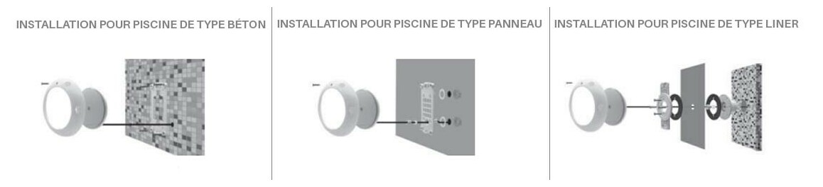 Avec ces nouveaux projecteurs, Hayward a également facilité le montage grâce aux 3 kits de fixations fournis. Ce moyen leur permet d'être compatibles avec tous les types de piscines (liner, béton, panneaux, etc.).