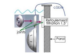 - Une fois le projecteur vissé, il suffit de faire passer ce câble par dessus la paroi de la piscine et d'effectuer les branchements.