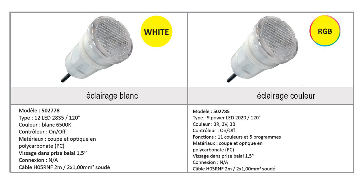 Selon vos besoins, vous pourrez synchroniser tous les projecteurs (modèle 1 canal), soit créer des ambiances colorées différentes dans son bassin (modèle 4 canaux).