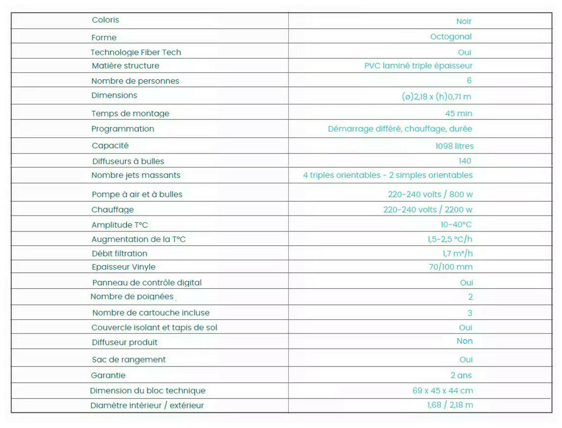Description Pure spa Carbone 6 places octogonal - Bulles, jets, écostérilisateur, Wifi
