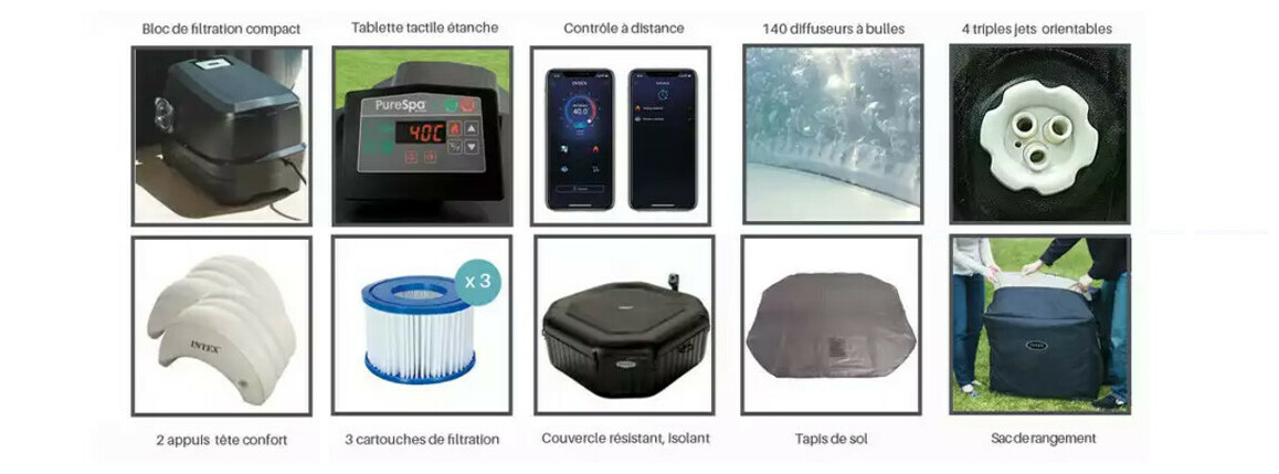 Le spa Carbone par Intex est un spa de qualité, avec un équipement complet à un prix très accessible.