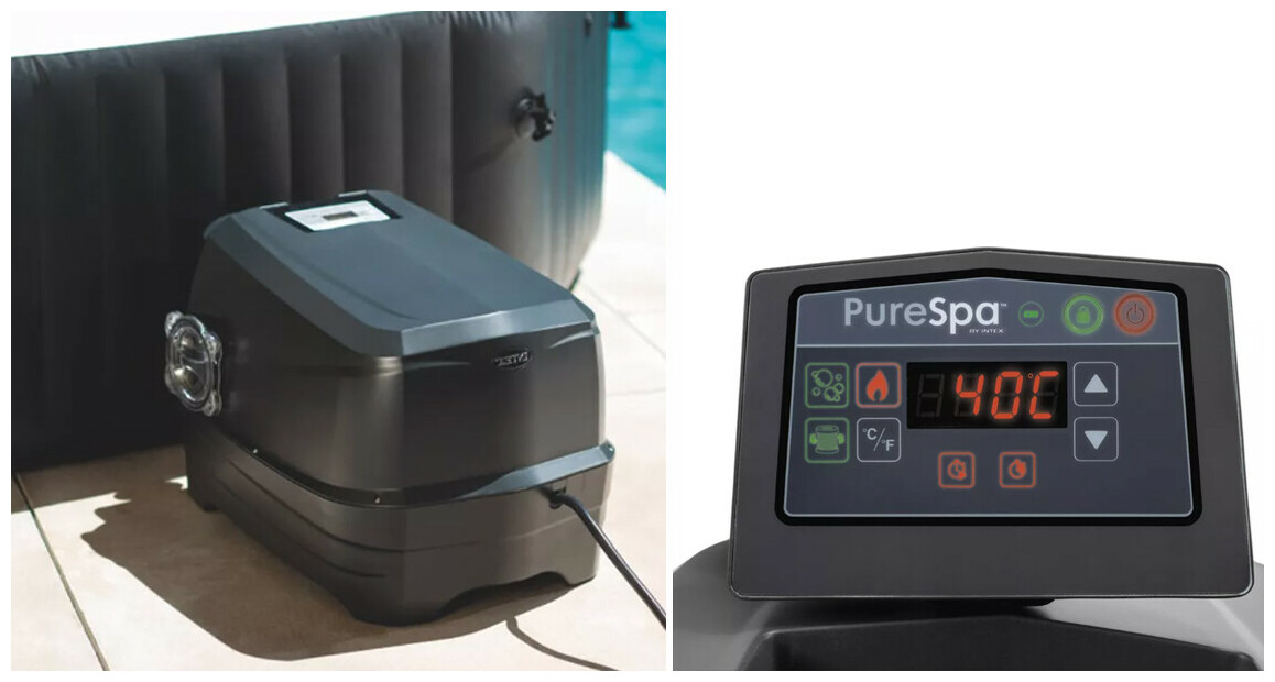 Tout en un, design et compact, le bloc technique de votre Pure spa Intex regroupe le gonfleur/dégonfleur, la filtration, le chauffage et le diffuseur à bulles !
