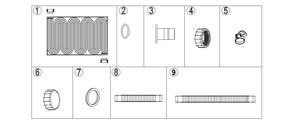 Le réchauffeur solaire Bestway Flowclear peut être connecté à des tuyaux de piscines de diamètre 32 mm et 38 mm à l'aide de l'adaptateur fourni.