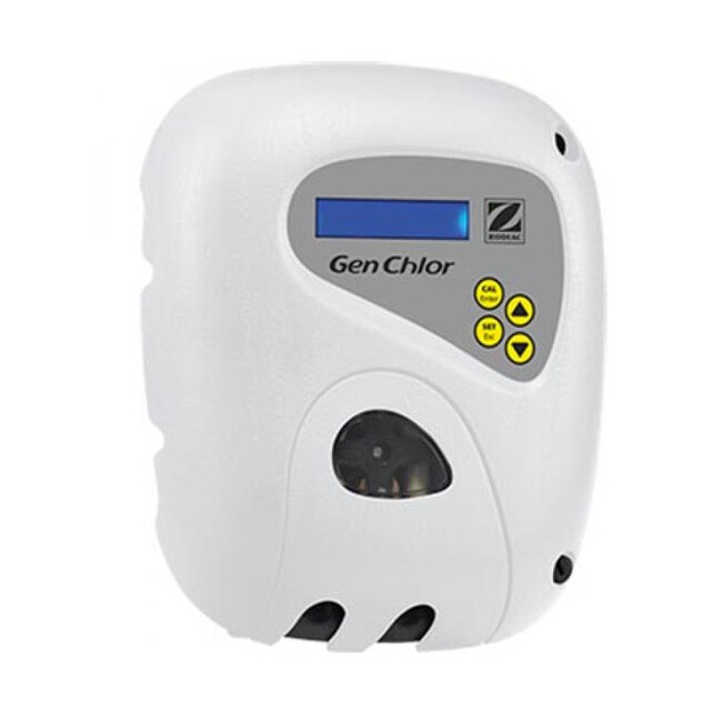Le régulateur de chlore GenChlore est composé d’un boitier situé dans le local technique, rattaché à une sonde qui analyse le pourcentage de chlore dans l’eau. En fonction des analyses de la sonde Redox, la pompe doseuse distribue du produit correcteur dans l’eau, si besoin. Il se met en route avec la filtratio de votre piscine. Afin de suivre l’évolution de votre traitement de l’eau, Le Genchlore affiche les données sur son écran LCD : seuil de référence, valeur mesurée, défauts constatés....