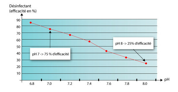 - La désinfection : l'efficacité du produit désinfectant est de 25% lorsque le pH est de 8.