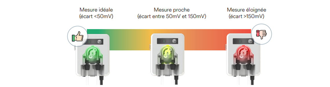 Rouge : la mesure ORP est trop éloignée, une action corrective est nécessaire