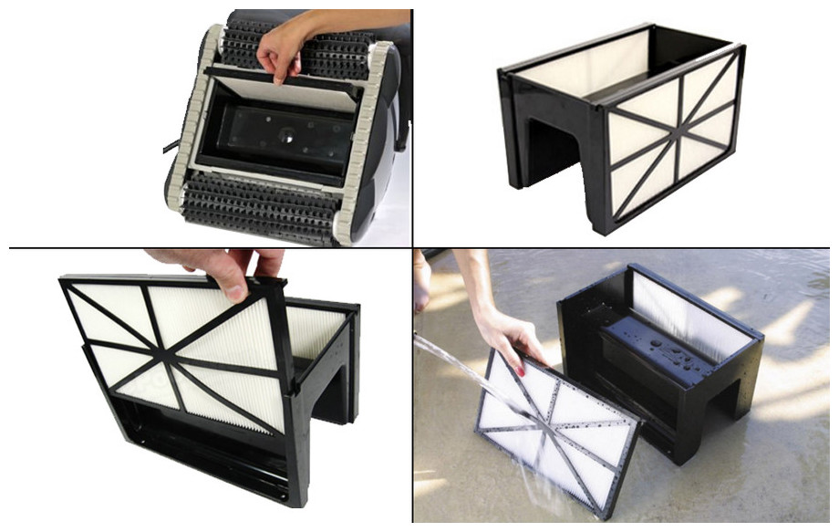 - Ôter les panneaux filtrants de la cassette, et les passer sous un jet d'eau claire pour éliminer les saletés collectées.