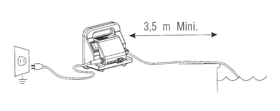 - Installer le transformateur à une distance minimale de 3.5 m par rapport au bassin.