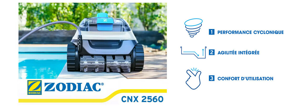 Dites adieu aux soucis de nettoyage de votre piscine grâce au robot CNX 2560 de Zodiac.