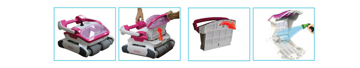 Le D500 Lite possède un filtre ultra-fin 4D de pointe composé de boucles 3D élastiques qui piègent les plus petites particules et évitent le colmatage pour une puissance d'aspiration maximale et une piscine impeccable.