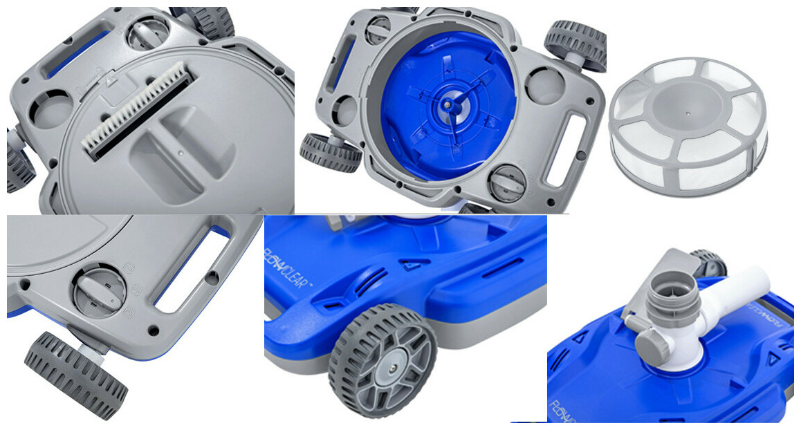 - La brosse au bas du nettoyeur aidera à collecter les débris tels que la saleté, les feuilles et le sable dans le panier avant qu'ils n'atteignent le filtre, prolongeant la longévité de la pompe et gardant la piscine parfaitement propre.