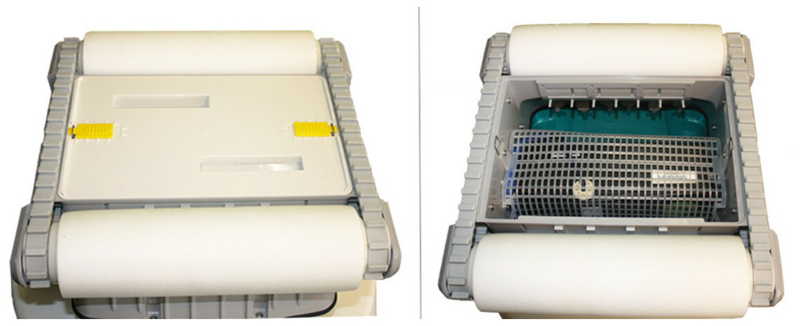 Facilement accessible par le bas du robot, Le sac de filtration d'une grande finesse de filtration (50µ) permet de récolter aussi bien les gros débris que les fines poussières.