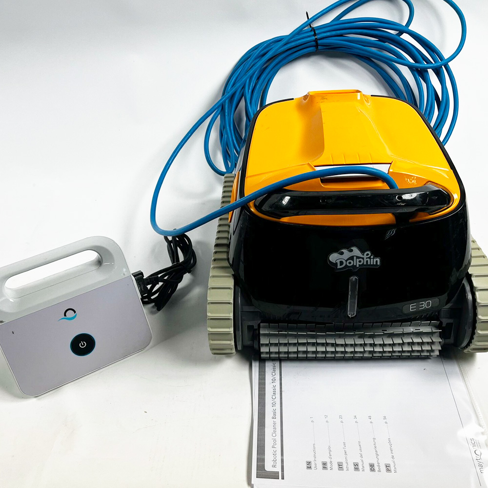Robot piscine Dolphin E30 reconditionné. le robot a plusieure rayure sur le capot et l'arriere et les coté-chenille jaunie. Robot testé par notre service technique, en parfait état de marche. Etat correct. Garantie 2 ans.