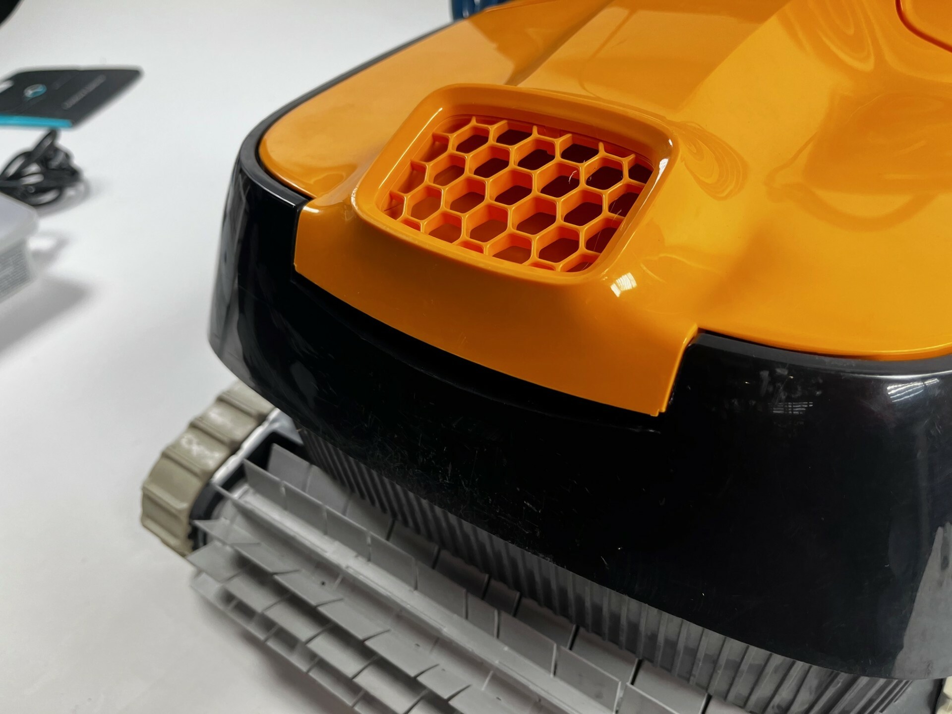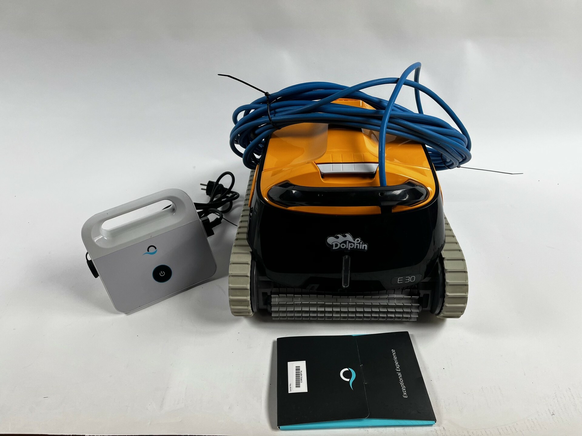 Robot de piscine Dolphin E30 reconditionné. Le robot a déjà servi et présente plusieurs rayures, ainsi que des chenilles et un filtre jaunis. Il a été testé par notre service technique et est en parfait état de fonctionnement. État général correct. Garanti 2 ans.