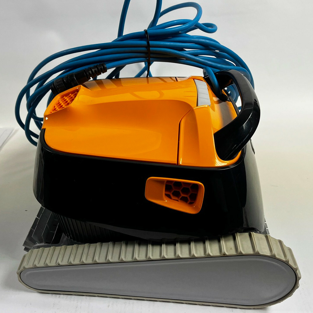 Robot de piscine Dolphin E30 reconditionné. Il présente plusieurs rayures, et le filtre ainsi que les chenilles sont jaunis. Le robot a été testé par notre service technique et est en parfait état de fonctionnement. État général correct. Garanti 2 ans.