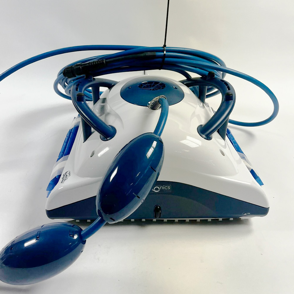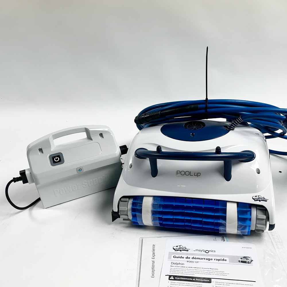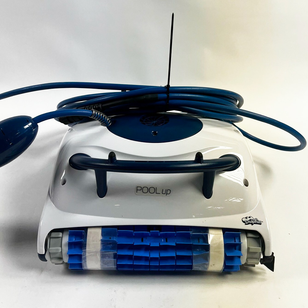 Robot de piscine DOLPHIN POOL UP reconditionné. Le robot a déjà servi. Il présente du sable dans le filtre, ainsi que des traces d'utilisation et une mousse jaunie. Il a été testé par notre service technique et est en parfait état de fonctionnement. État général correct. Garantie 2 ans.