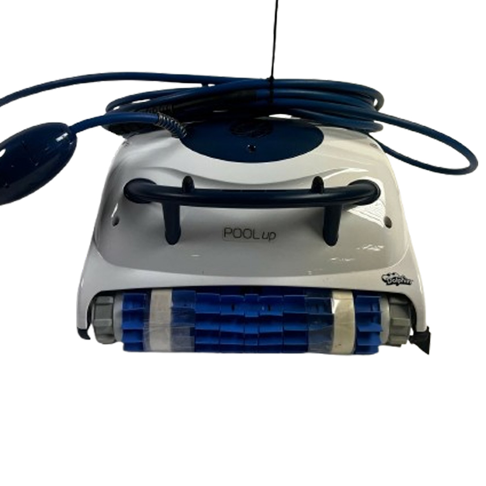 Robot de piscine DOLPHIN POOL UP reconditionné. Le robot a déjà servi. Il présente du sable dans le filtre, ainsi que des traces d'utilisation et une mousse jaunie. Il a été testé par notre service technique et est en parfait état de fonctionnement. État général correct. Garantie 2 ans.