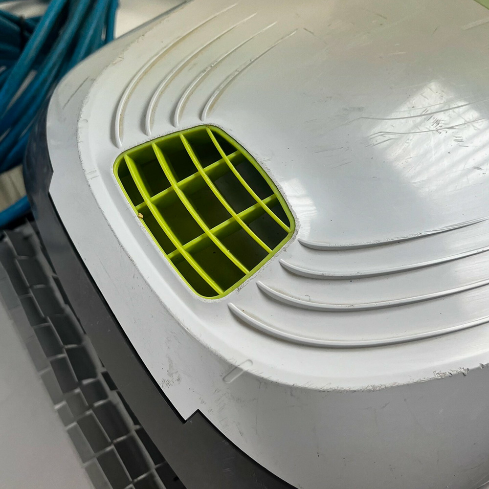Robot de piscine Dolphin T35 reconditionné. Le robot est abîmé au niveau du capot et présente des rayures à l?arrière. Les chenilles et le filtre sont jaunis, et le chariot montre des traces d?utilisation. Il a été testé par notre service technique et est en parfait état de fonctionnement. État général correct. Garanti 2 ans.