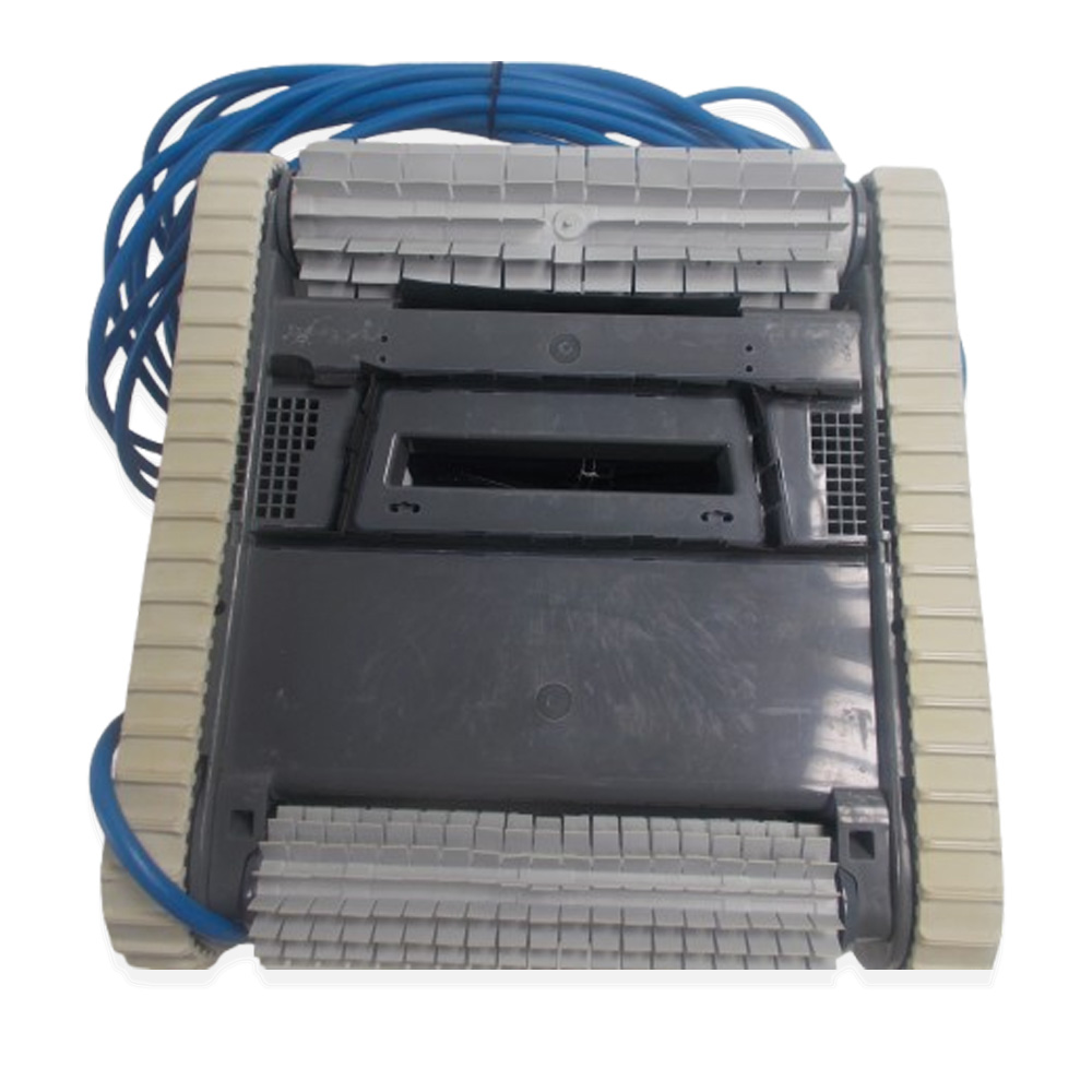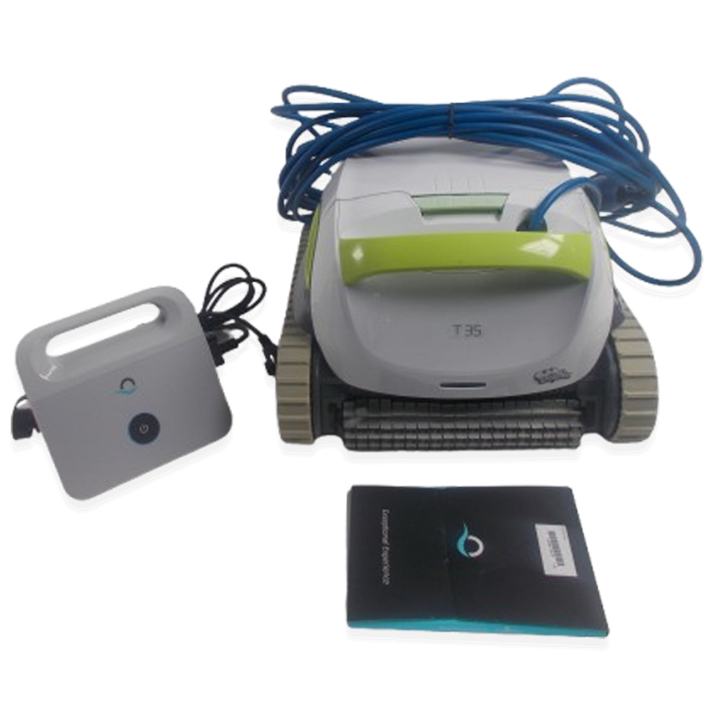 Robot de piscine DOLPHIN T35 avec chariot reconditionné. Le robot présente des rayures sur les côtés et le dessous. Le filtre est jauni. Il a été testé par notre service technique et est en parfait état de fonctionnement. État général correct. Garantie 2 ans.