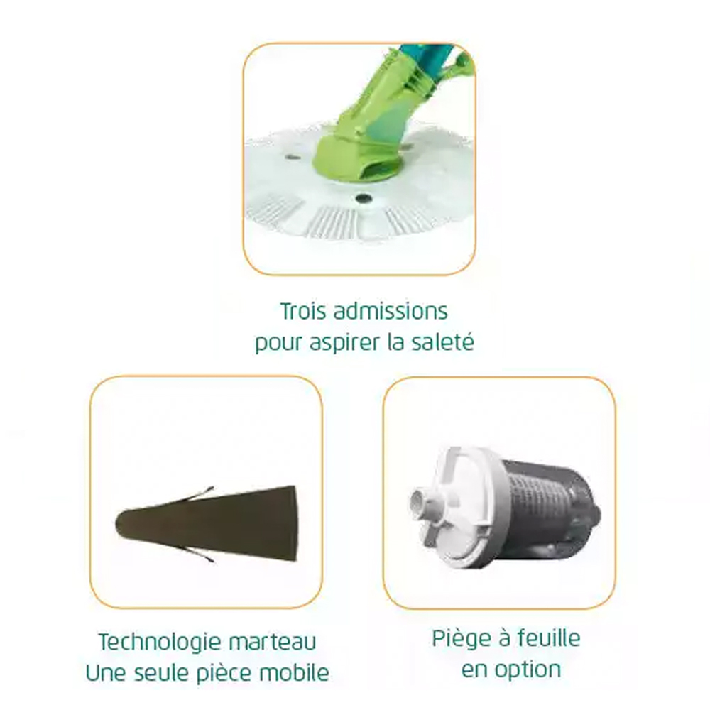 - Convient : pour piscines à fond plat ou en pentes douces, ainsi que pour les piscines hors sol.