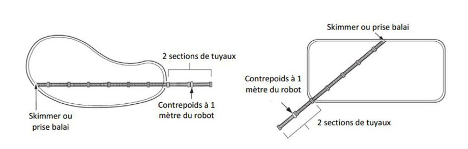 L'installation du robot se fait sur une filtration en bon état de marche ; le skimmer, le filtre et le préfiltre de la pompe doivent être propres.