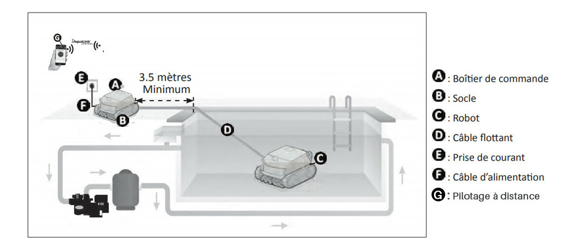 - Application : APP iAQUALINK? pour contrôler le démarrage, l'arrêt et le suivi du cycle, optimisations du robot par des mises à jour automatiques.