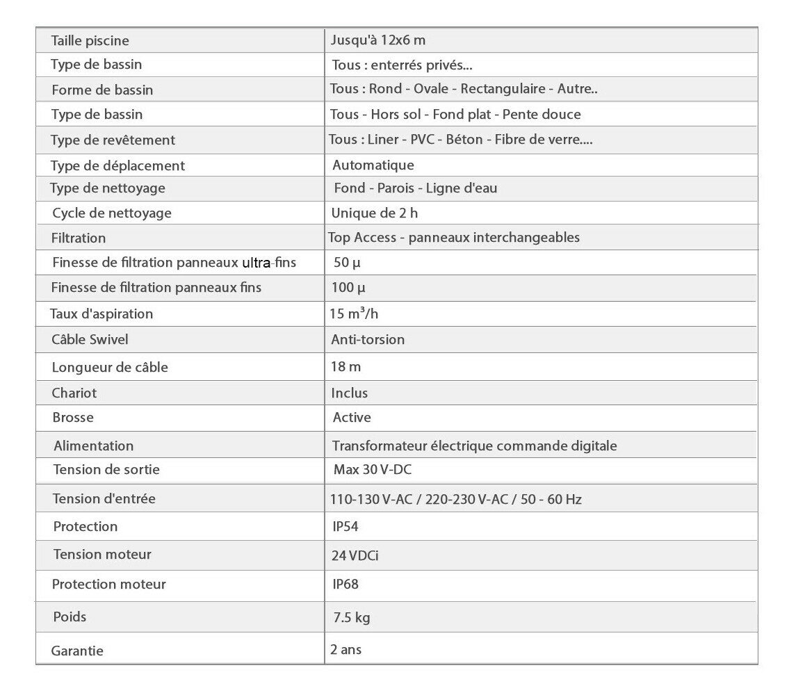 Idéal pour les piscines jusqu'à 12 m de long, il vous procurera un nettoyage minutieux du fond, des parois et de la ligne d'eau.