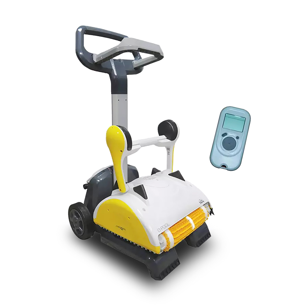 Le O'Pool TC est livré avec télécommande, brosse combinée, un support avec cassettes ultra fines + cassettes fines et un caddy pour le transport.