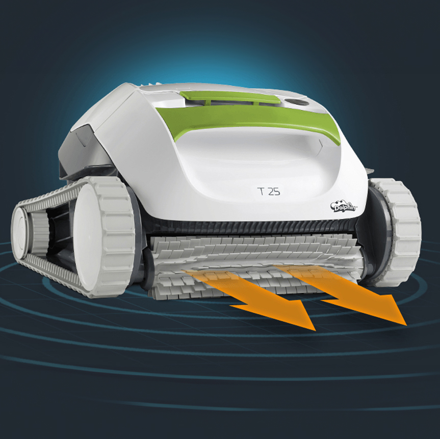 Le nettoyeur Dolphin T25 nettoie en toute autonomie et en seulement 2h, le fond et les parois de votre piscine, quelque soit son revêtement à l'aide de sa brosse active qui désincruste les saletés, même les plus tenaces !
