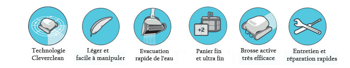 La technologie CleverClean ? : La navigation de précision : Propulsé par la technologie CleverClean ?, la couverture de votre bassin est optimisée par un système de navigation avancé et un logiciel de numérisation. Cette technologie garantit à votre robot l'itinéraire le plus efficace pour nettoyer le fond de votre piscine. Tellement intelligent, le système permet à votre nettoyeur de contourner automatiquement les obstacles et de reprendre rapidement son chemin.