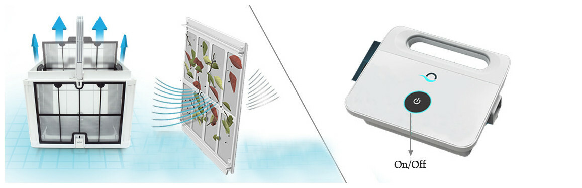 La filtration : Filtration efficace de l'eau grâce à son panier filtrant fin et ultra fin pour une finesse précise de filtration des débris, quelle que soit leur taille. Pour nettoyer votre filtre, rien de plus facile, il suffit juste de le retirer par le dessus du robot et de le rincer à l'eau claire !