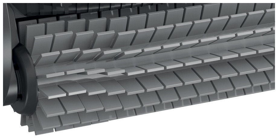 Le brossage actif : Brosse avant active, tourne 2 fois plus vite que la vitesse de déplacement du robot pour un nettoyage amélioré du fond de la piscine. Peu importe le revêtement, toutes les impuretés, même les plus tenaces sont éliminées grâce à ses lamelles pour un fond impeccable !